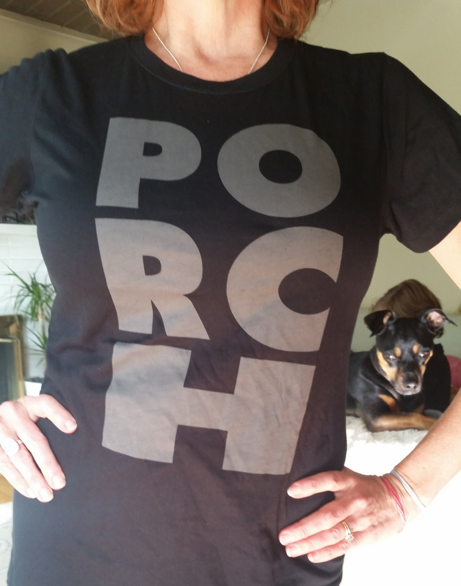 Porch Logo T-shirt (dark orange logo on tan tee)